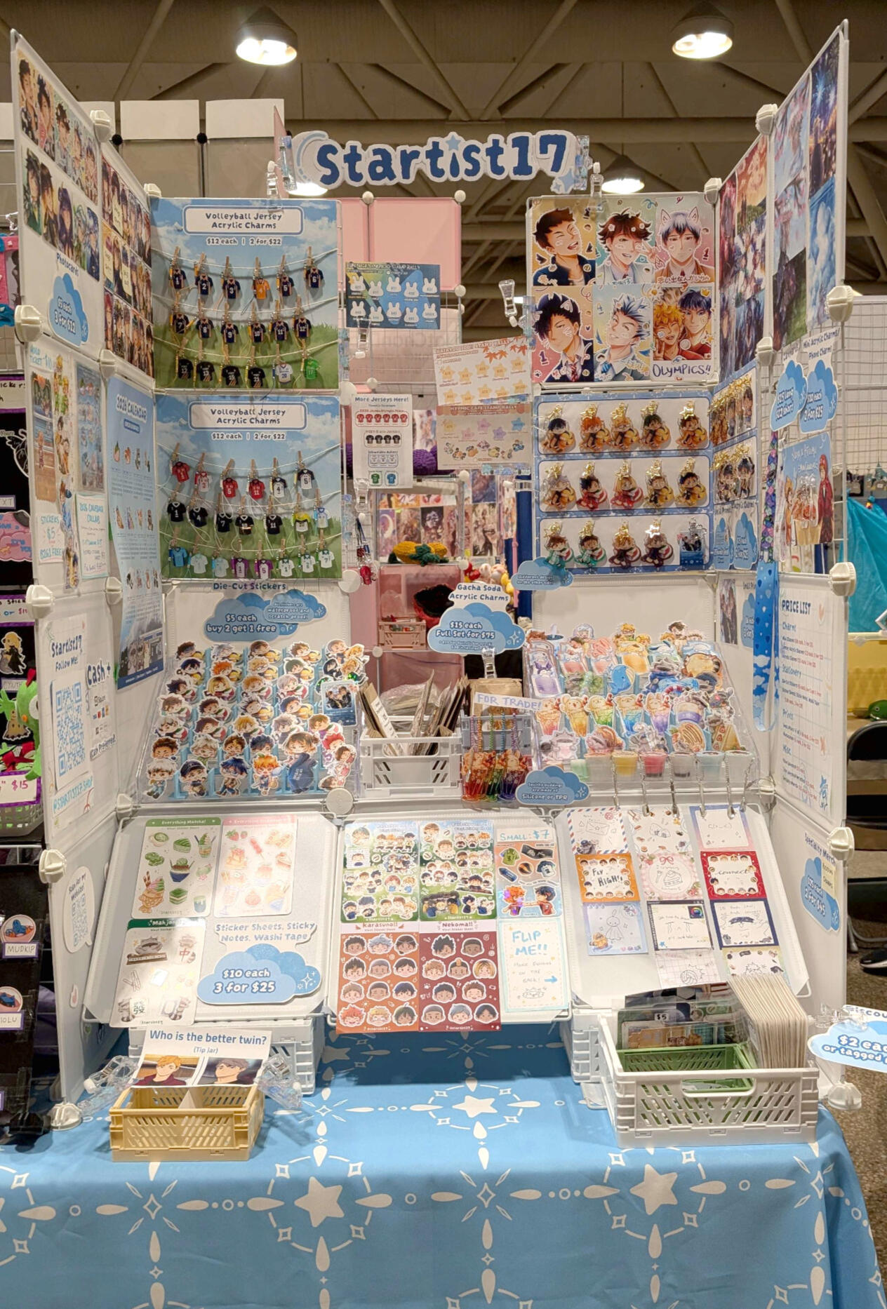 I have an educational background in fine arts and live performance production.Drawing has always been a hobby of mine since I was young, and I decided to pursue it more seriously during my high school years. Ever since attending my first anime convention in 2018, I had always dreamed of making my own merch to sell and share with others!I began formally tabling in 2024 at local markets around the Greater Toronto Area, and have since had the opportunity to table at large scale conventions such as Anime North and Fanexpo Canada.